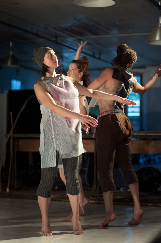 Jill challenged me to create wardrobe for the apocalypse. Think peak oil, barren land, hazy skies. Her work addresses the feelings and issues associated with sustainability, the mechanization of agriculture and mass consumption of resources. As such, I’ve taken a familiar approach to the design of costumes for this piece.